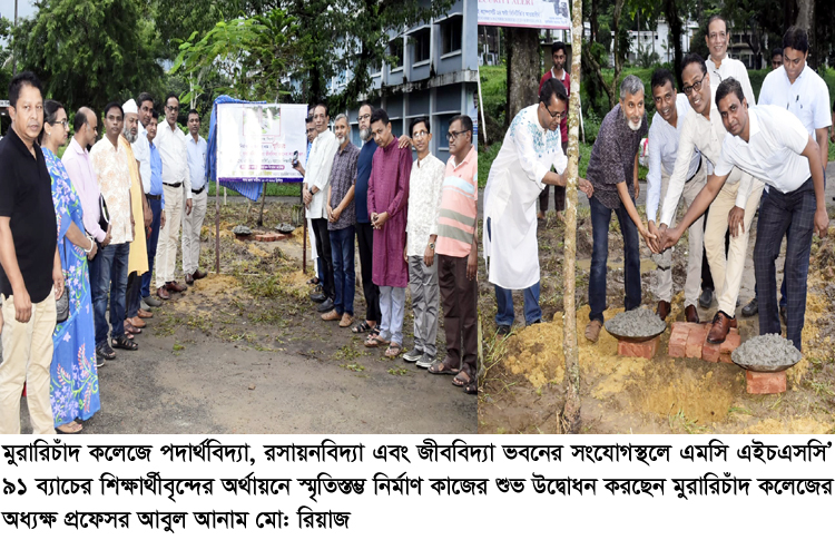 সিলেটের ঐতিহ্যবাহী মুরারিচাঁদ (এমসি) কলেজে স্মৃতিস্তম্ভ নির্মাণ কাজের উদ্বোধন করা হয়েছে। বৃহস্পতিবার (১৩ জুলাই) সন্ধ্যা ৬ টায় পদার্থবিদ্যা, রসায়নবিদ্যা এবং জীববিদ্যা ভবনের সংযোগস্থলে এমসি এইচএসসি’৯১ ব্যাচের শিক্ষার্থীবৃন্দের অর্থায়নে স্মৃতিস্তম্ভ নির্মাণ কাজের শুভ উদ্বোধন করেন মুরারিচাঁদ কলেজের অধ্যক্ষ প্রফেসর আবুল আনাম মো: রিয়াজ।