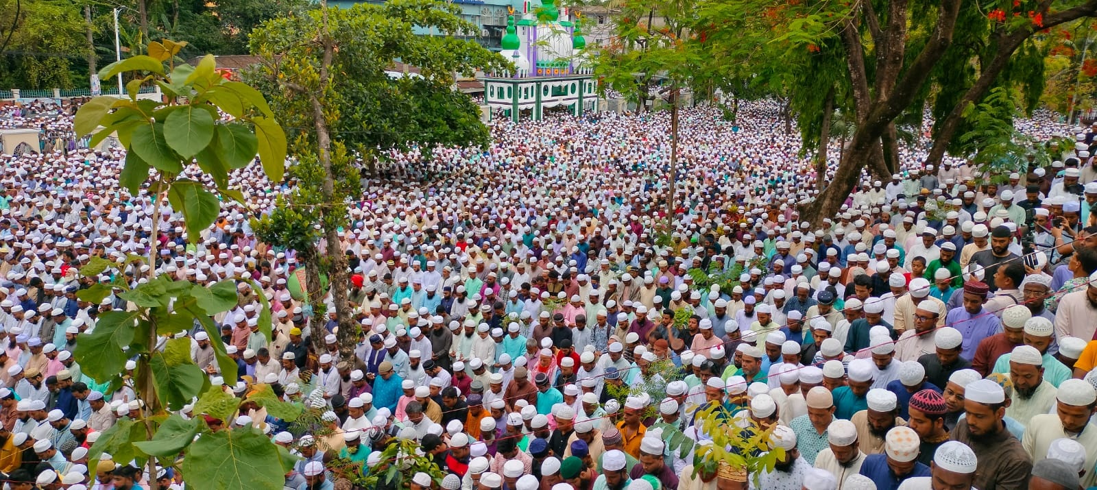 সরেজমিনে দেখা যায়, দুপুর ১২টা থেকে তার লাশ শাহী ঈদগাহে আনা হয়। এখানে লোকজন সারিবদ্ধভাবে দাঁড়িয়ে শেষ বারের মতো তার লাশ দেখেন। এক পর্যায়ে পুরো শাহী ঈদগাহ মাঠ কানায় কানায় পূর্ণ হয়ে যায়। শাহী ঈদগাহে স্থান সংকুলান না হওয়ায় লোকজন ঈদগাহের দুই পাশের রাস্তায় দাঁড়িয়ে জানাজার নামাজ আদায় করেন। জানাজায় অংশ নেয়া নগরীর হাওয়াপাড়া এলাকার বাসিন্দা কে এম আব্দুল্লাহ আল মামুন জানান, জানাজায় লক্ষাধিক মানুষের সমাগম ঘটে। এ কারণে শাহী ঈদগাহ, কাজিটুলা ও কুমারপাড়া ঝরণারপার এলাকায় যানজটের সৃষ্টি হয়।