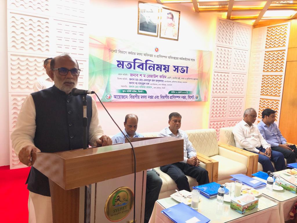 তিনি আজ বুধবার (১২ জুলাই) দুপুরে বিভাগীয় মৎস্য দপ্তর ও বিভাগীয় প্রাণিসম্পদ দপ্তর সিলেট এর আয়োজনে সার্কিট হাউসে বিভাগে কর্মরত মৎস্য অধিদপ্তর ও প্রানিসম্পদ অধিদপ্তরের কর্মকর্তাদের সাথে মতবিনিময় সভায় এসব কথা বলেন।