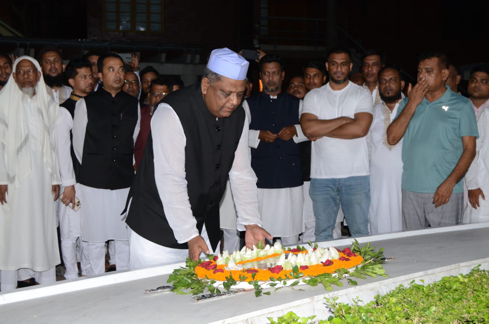 সোমবার ( ৩জুলাই ) বিকালে তারা মাজারে পৌঁছালে সংশ্লিষ্ট দায়িত্বশীলরা তাদের স্বাগত জানান। এরপর তারা ফুল দিয়ে শ্রদ্ধা নিবেদন করেন এবং ১৫ আগস্টের সকল শহীদ, মহান মুক্তিযুদ্ধে শাহাদাত বরণকারী ৩০ লাখ শহীদ, শহীদ বুদ্ধিজীবী ও জাতীয় চার নেতার আত্মার মাগফেরাত কামনা করে মোনাজাত করেন।