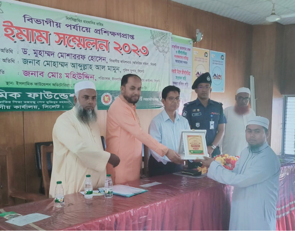বিভাগীয় পর্যায়ে প্রশিক্ষণপ্রাপ্ত ইমাম সম্মেলন-২০২৩ অনুষ্ঠিত হয়েছে। মঙ্গলবার (৩০ মে) বিকেলে ইসলামিক ফাউন্ডেশন সিলেট বিভাগীয় কার্যালয় এর উদ্যোগে ফাউন্ডেশন অডিটরিয়ামে এই সম্মেলনের আয়োজন করা হয়। সিলেটের বিভাগীয় পর্যায়ের শ্রেষ্ঠ ইমাম নির্বাচিত হয়েছেন জগন্নাথপুর শফিকুল আহমদ ভূঁইয়া জামে মসজিদের ইমাম, শফিকুল আহমদ ভূঁইয়া হাফিজিয়া মাদ্রাসা এবং বেগম নুর জাহান নূরানী ইসলামী কিন্ডার গার্ডেন ও এতিমখানার পরিচালক হাফিজ মাওলানা আহমদ শফী।