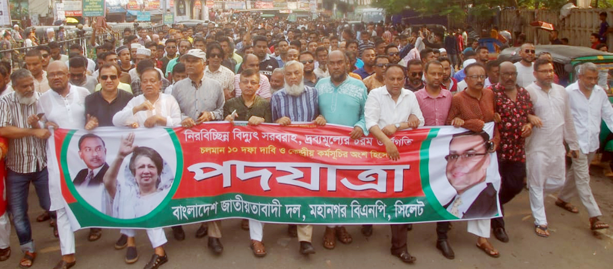 তিনি মঙ্গলবার বিকেলে নগরীর ঐতিহাসিক রেজিস্ট্রি মাঠে বিএনপির কেন্দ্রীয় কর্মসূচির অংশ হিসেবে সিলেট মহানগর বিএনপি আয়োজিত পদযাত্রা কর্মসূচি শুরুর পূর্বে আয়োজিত সংক্ষিপ্ত সমাবেশে প্রধান অতিথির বক্তব্যে উপরোক্ত কথা বলেন। দেশব্যাপী লোডশেডিং, বিদ্যুতখাতে সরকারের দুর্নীতি, উচ্চ আদালতের নির্দেশনা অধস্তন আদালত ও সরকারকর্তৃক অবজ্ঞা, গায়েবি মামলায় গণগ্রেপ্তার, পুলিশি হয়রানি, দ্রব্যমূল্যের ঊধর্বগতিরোধ সহ ১০ দফা দাবিতে এ কর্মসূচির আয়োজন করা হয়। বিকেল ৩টায় নগরীর রেজিস্ট্রি মাঠ থেকে শুরু হয়ে নগরীর গুরুত্বপূর্ণ পয়েন্ট প্রদক্ষিণ করে উপশহরস্থ রোজভিউ পয়েন্টে গিয়ে শেষ হয়। কর্মসূচিতে সিলেট জেলা, মহানগর বিএনপি, অঙ্গ ও সহযোগী সংগঠন, ৪২টি ওয়ার্ড বিএনপি, অঙ্গ ও সহযোগী সংগঠনের বিপুল সংখ্যক নেতাকর্মী অংশ নেন।