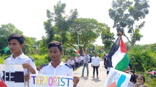 ফিলিস্তিনে হামলার প্রতিবাদে উমাইরগাঁও আল ইকরা একাডেমির মানববন্ধন