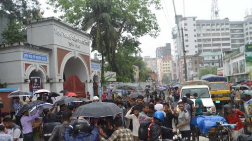এইচএসসি পরীক্ষা পেছানোর দাবীতে সিলেটে শিক্ষার্থীদের অবস্থান কর্মসূচি