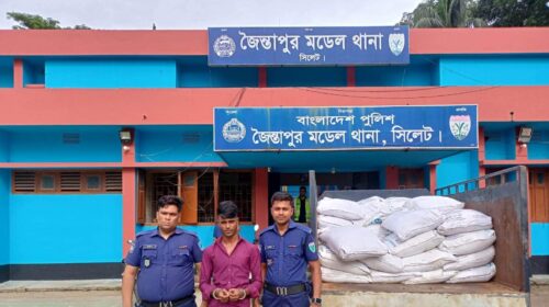 জৈন্তাপুরে ভারতীয় ৫০ বস্তা চিনি জব্ধ : গাড়ি সহ আটক-১