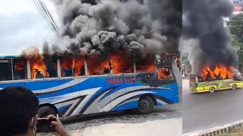 ঢাকা-চট্টগ্রাম মহাসড়কে দুই বাসে আগুন